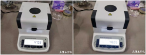 - 復(fù)位儀器,待儀器冷卻至40℃以下后,再取4g左右玉米面均勻鋪在樣品盤上,重復(fù)上述測(cè)試步驟;測(cè)試結(jié)束后得出第二組數(shù)據(jù),顯示樣品的水分含量為46.95%;數(shù)據(jù)基本相同誤差僅為0.07%,表示測(cè)試結(jié)果可靠,可重復(fù)性好。