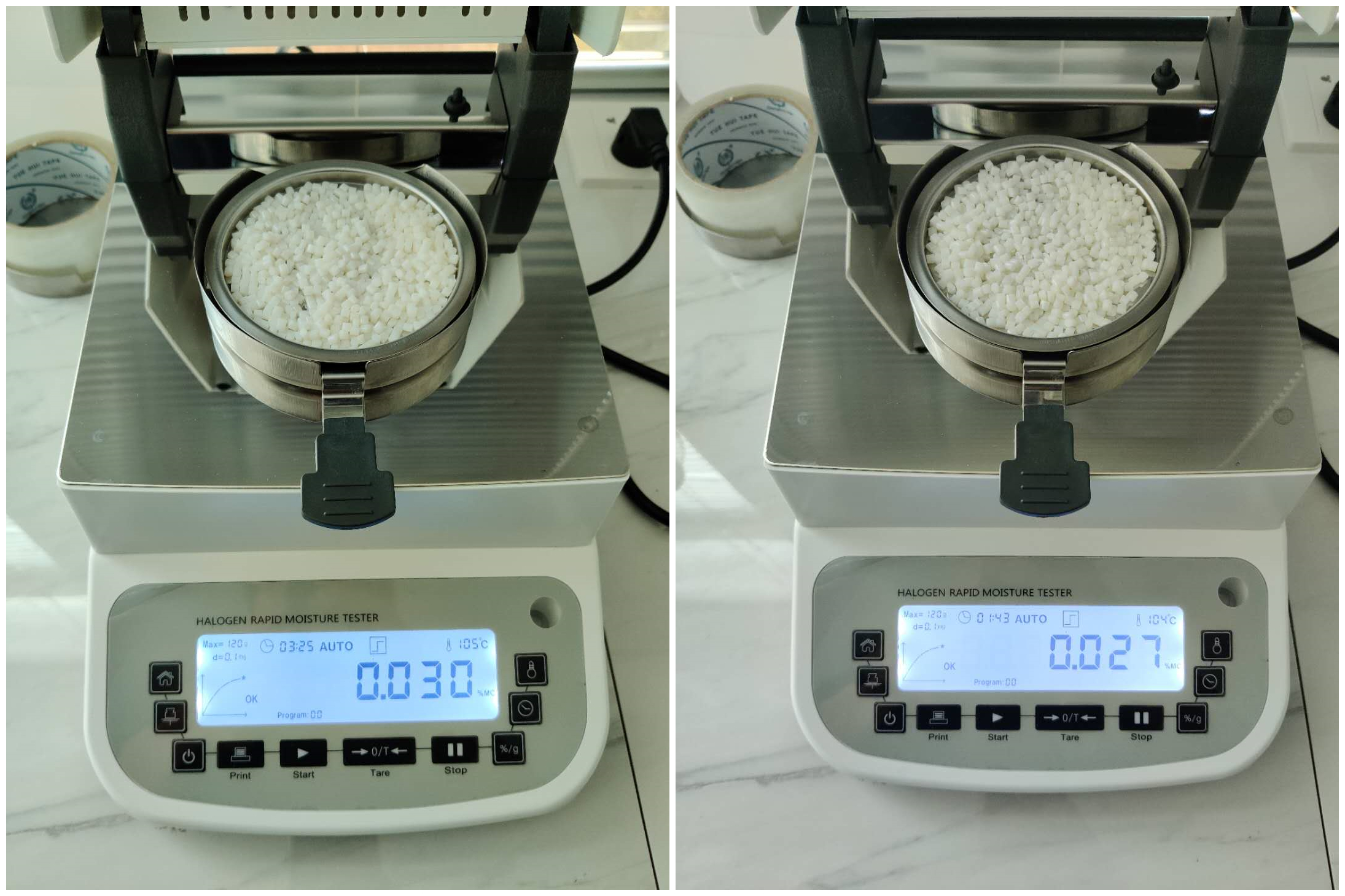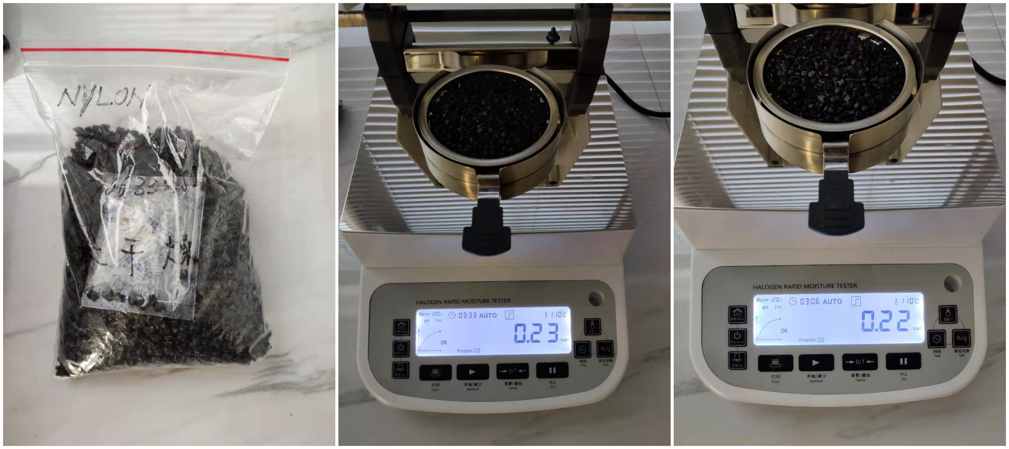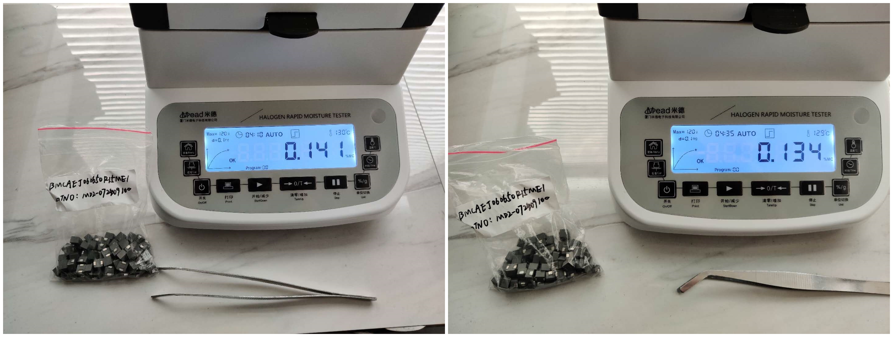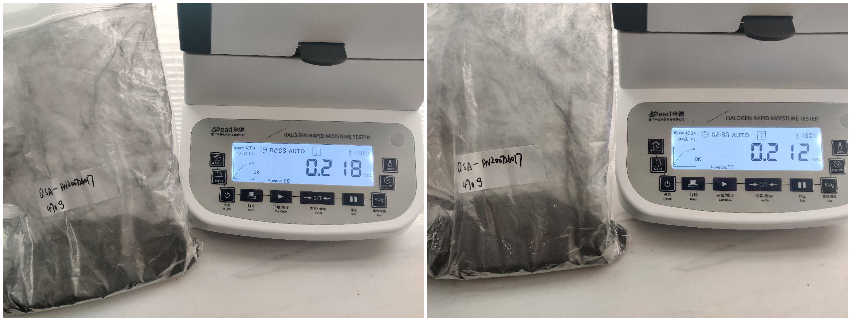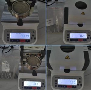 測試儀器:米德QL-720D(稱重精度0.001g,水分解析0.01%)