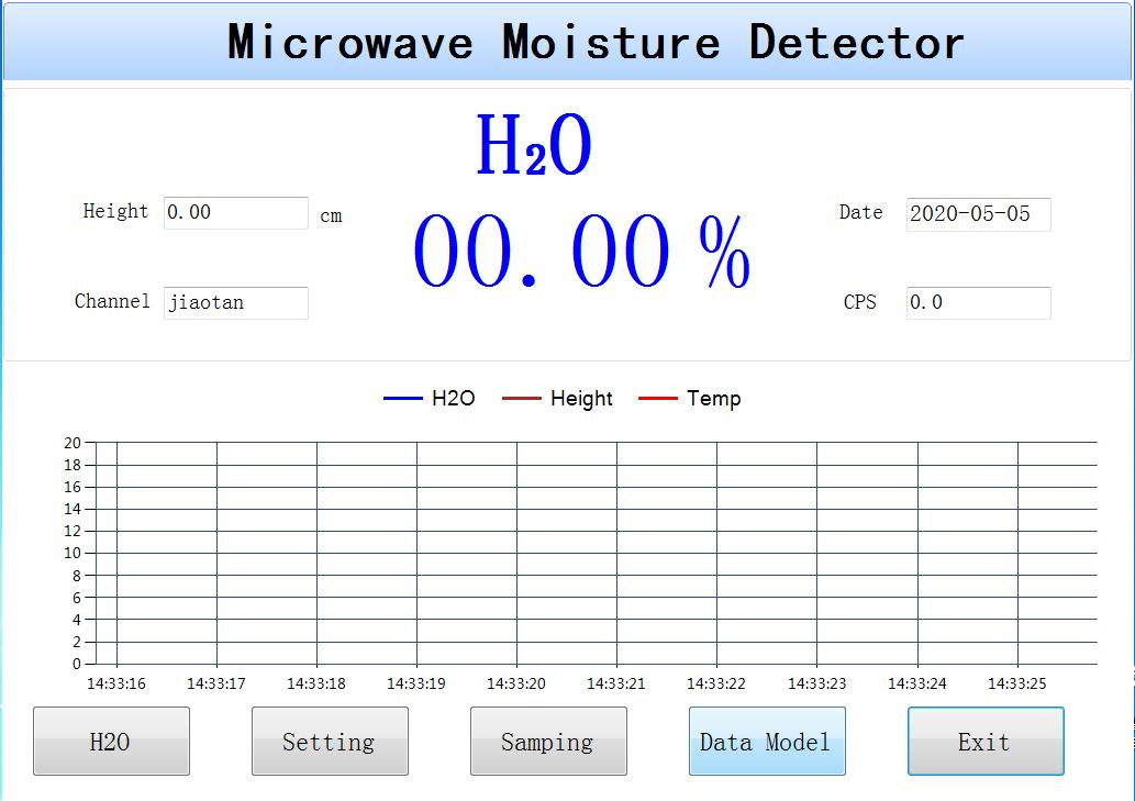 此界面主要顯示四個(gè)數(shù)據(jù)值:水分、物料高度、檢測(cè)通道和能量值