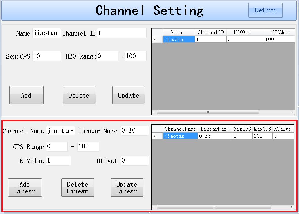 注意:每一個(gè)通道可以創(chuàng)建多個(gè)線性模型。但是CPS Range區(qū)間不能交叉,如果發(fā)生了交叉,則以最后一個(gè)線性模型獲取的數(shù)據(jù)為準(zhǔn)。只有創(chuàng)建線性后,再能在取樣界面選中對(duì)應(yīng)的線性進(jìn)行取樣。