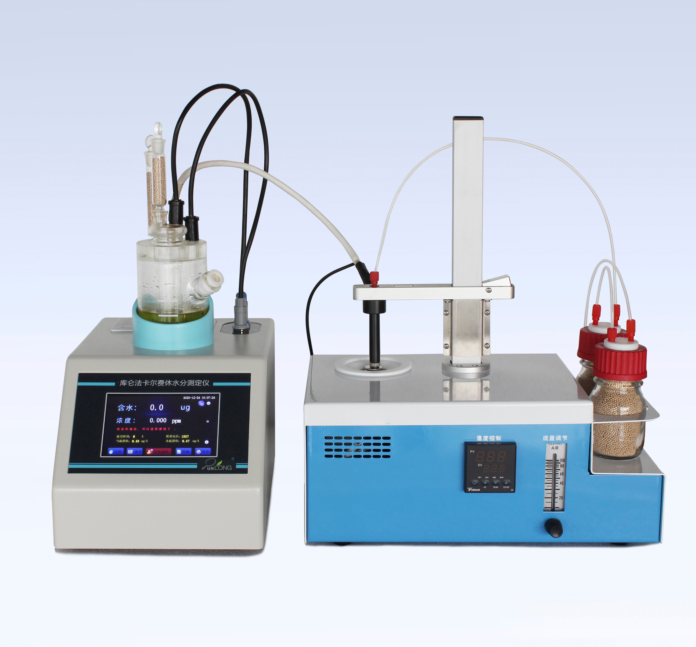 4、自動(dòng)扣除漂移,自動(dòng)檢測載氣中水分,可配合卡氏加熱爐測試難溶樣品