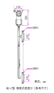 1: 直接式?在線液體密度計(jì)傳感器部分間距最少為200mm,直徑為50mm, 現(xiàn)場不能小于這些尺寸安裝,如選擇彎曲型密度計(jì),請(qǐng)測量好可以伸進(jìn)管內(nèi)的法蘭和長度尺寸.