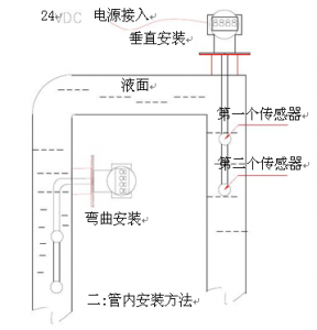 3: 管道安裝時(shí)需讓液體從最下面?zhèn)鞲衅髦逻M(jìn)入液體,或者從最上面?zhèn)鞲衅鞯纳厦孢M(jìn)入液體,不要從中間進(jìn)入液體。管道安裝通液體時(shí),管道閥門或者彎頭部分至少留出30CM液體緩沖距離。